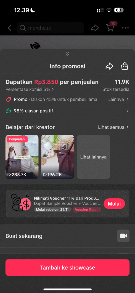 Pastikan Anda sudah gabung grup WA yang ada di Tombol di atas, kemudian Anda bisa mulai menambahkan Produk-produk dari Toko Alunata.id di Tiktok ke Showcase Anda